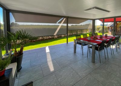 Als Sonnen-, Wind- oder auch Sichtschutz können Senkrechtmarkisen und Kassettenmarkisen angebracht werden. Zusätzlich kann die Lounge dank einer Wind-/Wetterschutzverglasung mit Isolierglas sogar als Wohnraum nutzbar gemacht werden.