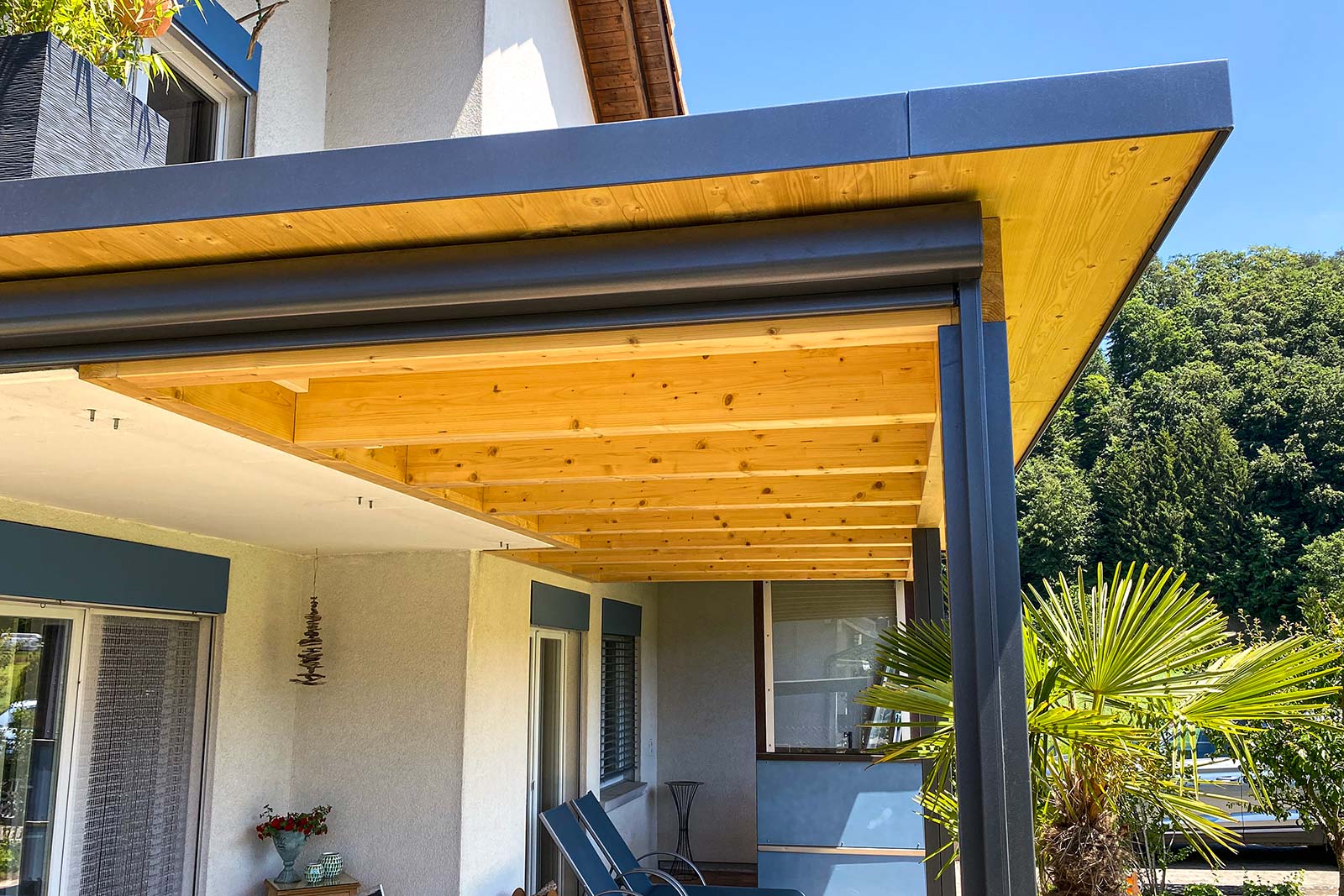 Terrassenlounge BERNA – Holzkonstruktion mit edler Aluminium-Dachumrandung